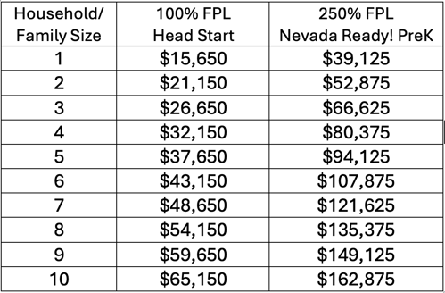 The Nevada Legislature expanded eligibility requirements for the Nevada Ready! PreK program in the 2025 Legislative session, which took effect on July 1, 2025. Children are now eligible for Nevada Ready PreK if: